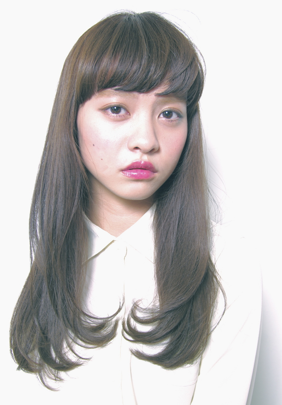 厚めのバングと重めのカットラインに毛先がワンカールする